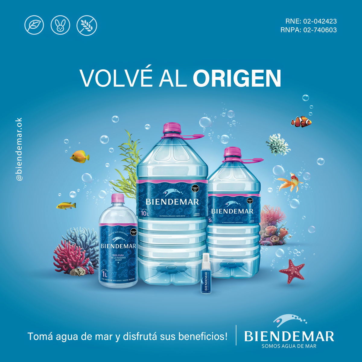 - 1/4 de agua de mar hipertónica pura BIENDEMAR y 3/4 parte de agua dulce o salada.